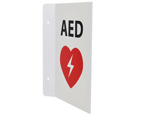 Transforming wall sign to effectively mark the location of your AED. Change the sign shape to fit your space by using one of three different mounting options (T-mount, V-Mount, or Corner Mount). Adhesive pads included for fast and easy mounting.